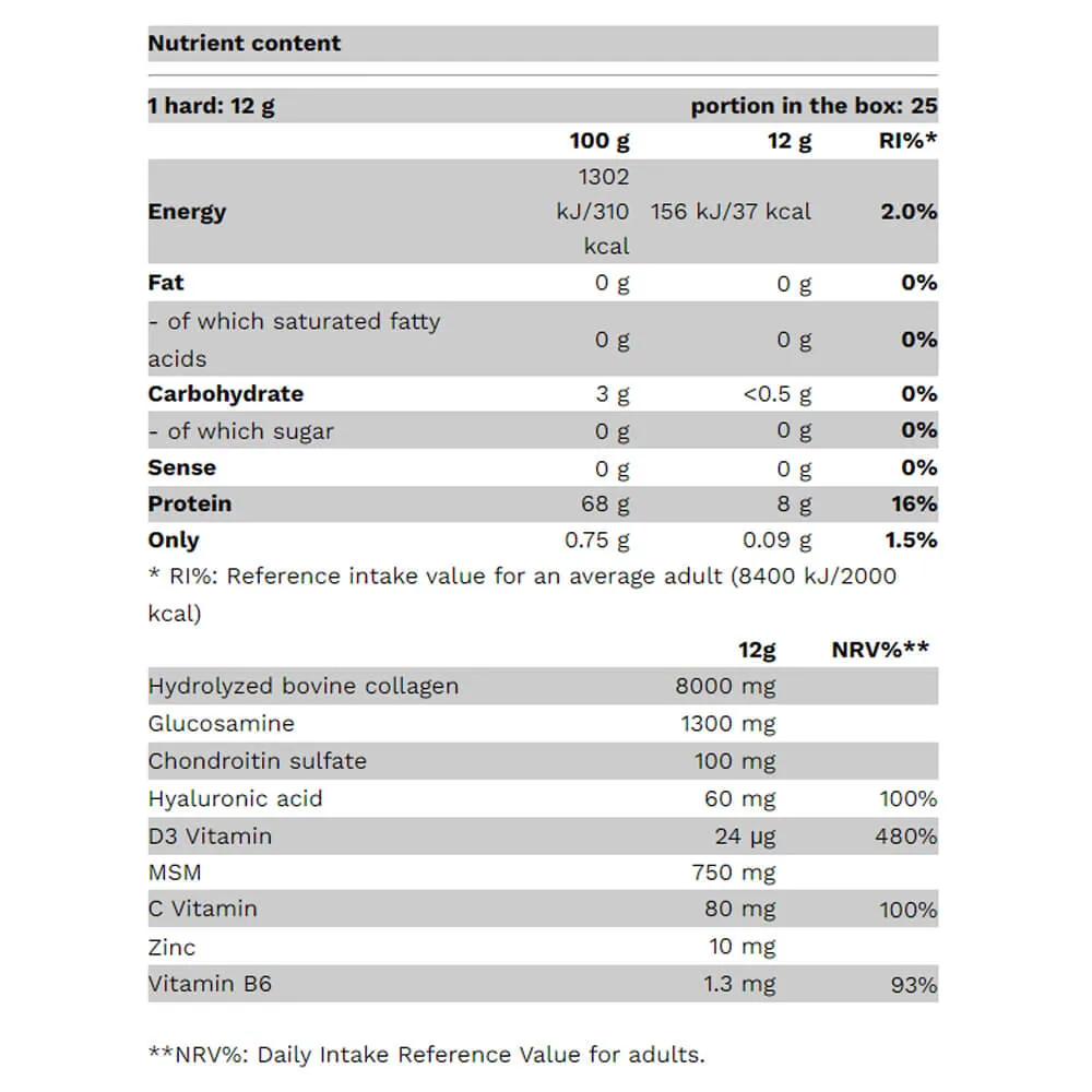 Το Puregold Bovine Collagen + Joint Complex περιέχει επίσης D-Γλυκοζαμίνη, MSM και Χονδροϊτίνη, τα οποία είναι συστατικά που υποστηρίζουν την υγεία των αρθρώσεων. Επιπλέον, περιέχει πρόσθετη βιταμίνη C, ψευδάργυρο και βιταμίνη Β6, τα οποία συμβάλλουν στη διατήρηση της φυσιολογικής κατάστασης του οργανισμού.